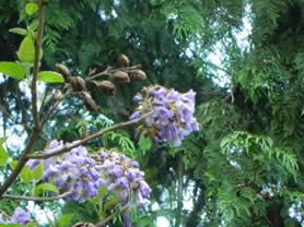 However, it is grown for its fragrant bright purple blossoms which resemble foxglove flowers. The flowers are 5 cms long and are borne in large upright panicles. They appear as the leaves emerge and fade to give way to clusters of large brown seed pods.